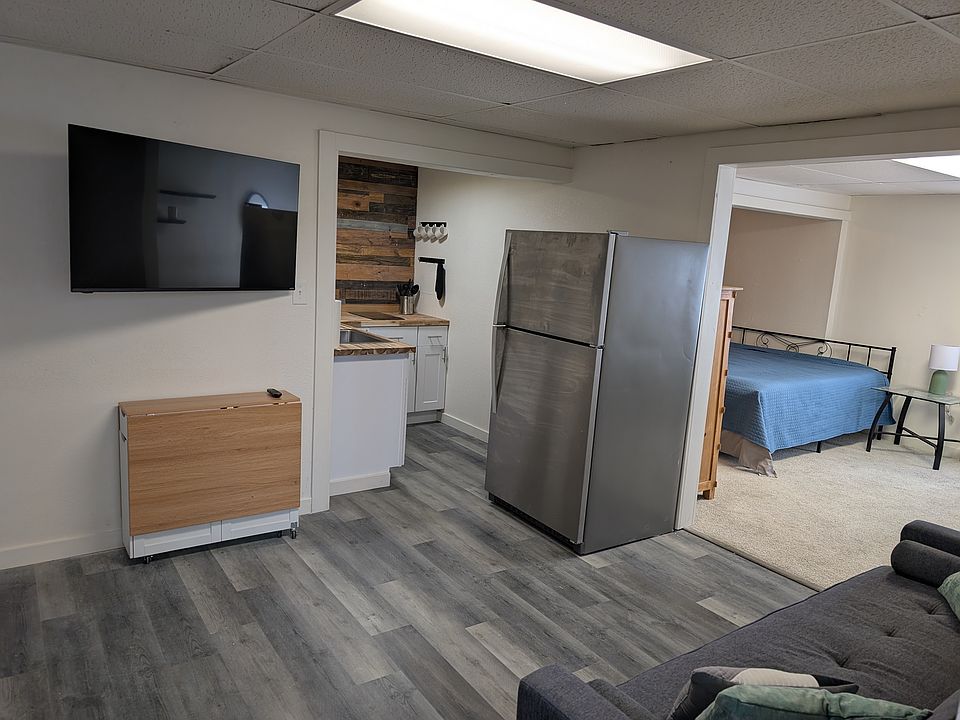 Newly remodeled, fully furnished, all inclusive basement 1 BR apartment available immediately. Brand new bathroom with a washer/dryer unit and unlimited hot water heater. Kitchen is compact but has everything you need, including a counter top induction burner a countertop oven, and a full size fridge. Although the apartment is a basement unit, it is cheery with a lot of natural light. In addition to living spaces, there are two bonus storage spaces--one under the stairs and a large open closet/storage room. You will definitely hear some noise from the main house--footsteps and possibly the TV. Probably not a good match for a daytime sleeper! Any lease length ok, rent includes all utilities, including internet. 1 well behaved dog ok. Off street parking. Apartment is being professionally cleaned this week, so better photos coming after that! Any lease length is ok, or a flexible termination date. Landlord pays all utilities No smoking in our on the property.