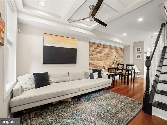 Welcome to this stunning end-of-group rowhome in the heart of Canton! From the moment you step inside, you’ll be greeted by charming coffered ceilings, gleaming hardwood floors, and a fresh neutral color palette that sets the tone for the entire home. The main level features a spacious living room, a separate dining area, and a convenient half bath. The gourmet kitchen takes center stage with white cabinetry, quartz countertops, stainless steel appliances, a striking marble herringbone backsplash, and a large center island beautifully accented with pendant lighting. Just beyond, your private rear patio awaits; a courtyard-inspired retreat perfect for growing your herb garden, grilling, or enjoying a quiet evening outdoors. Upstairs, you’ll find two generously sized bedrooms and two tastefully renovated bathrooms. This level also offers a private entrance to the rooftop deck, where sweeping Baltimore city views provide the ideal backdrop for relaxing or entertaining. The fully finished lower level offers incredible versatility with a third bedroom featuring a Murphy bed, a full bath with a tub, and additional living space; perfect for guests or a home office. Recent updates include the marble backsplash (2021), two renovated bathrooms (2022), Trex deck (2021), HVAC (2018), and a new water heater, range, and microwave (2025). With its modern upgrades, versatile living spaces, and unbeatable location, this home is truly move-in ready. Don’t miss your chance to own this Canton gem—it has everything you’ve been looking for!