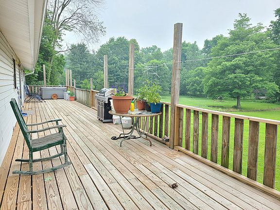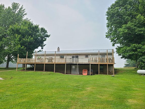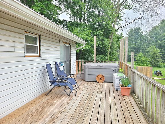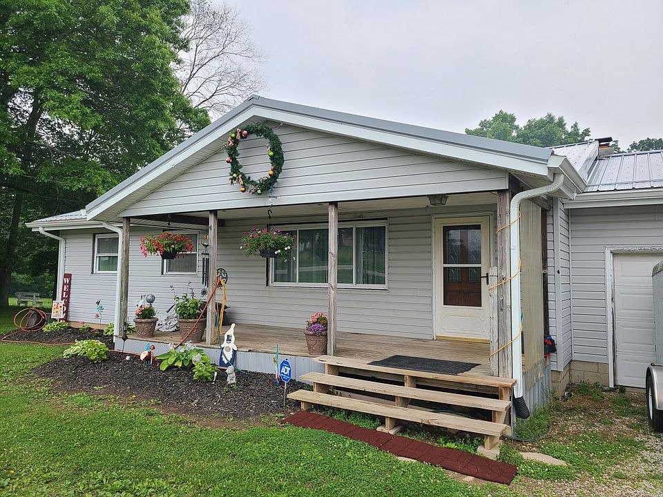 Nice ranch home in the country on over 2 acres of property! This home is full of updates: refinished, hardwood floors, custom kitchen cabinets, spacious deck, new sump pump, water heater 2022, AC 2022, metal roof 2018, fresh paint throughout, solid wood interior doors, renovated bathroom, pex plumbing, 200amp electric and waterproofed basement. Enjoy the open floor plan w/ vaulted ceilings in living/dining rooms - open to kitchen, primary bedroom with private sliding doors to deck, 2 add. bedrooms & full bathroom make up main level. Full Basement with custom work bench and walk-out double doors to back yard. Plenty of entertaining outdoor space, watch the sunrise on deck overlooking the back yard, a small creek runs through property & some woods. Pole Barn, Chicken coop, plenty of parking