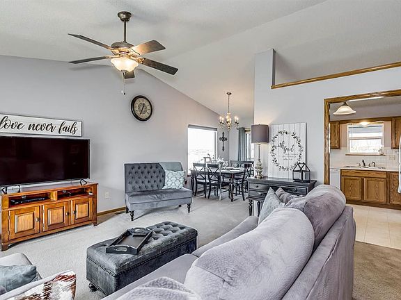 Welcome home to 815 S Longbranch Dr Maize KS. Pride of ownership is apparent in this very well maintained family home on a corner water lot. Vaulted ceilings, open floor plan, and neutral decor welcome you as you enter. The kitchen includes all appliances, pull out drawers in the cabinets, eating bar, and great water view of the backyard. Master suite accommodates a king size bed easily, has ensuite bath with dual vanities, shower, and walk in closet. A secondary bedroom, nice full bath, and separate laundry room finish the main level. Downstairs in the view out basement entertain with ease in the huge family/rec room with bar area and the perfect setup for movies or games. A large third bedroom doubles as an office with plenty of space for some built ins to be removed and a closet installed. Third full bath, plenty of storage, and nicely kept mechanicals are also on the lower level. Don't miss the three car garage, NEW Roof installed 2019, well and sprinklers, and of course the amazing brand NEW screened deck with built in curtains overlooking the backyard view. All of this in Maize Schools for under $200,000. Schedule your appointment today.