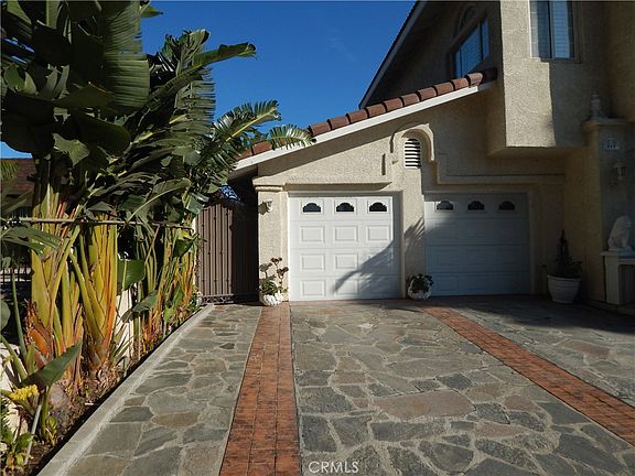 Exceptionally clean, upgraded single story 3 bedroom, 2 bath, 1 car garage on quiet tree lined street. Private gated entry leads you to lushly landscaped, beautiful, serene entry. Owners have taken extra care to ready this home for new tenants. Laminate wood floors throughout, smooth ceilings, newer light fixtures and dual pane windows are just some of the upgrades. Open floorplan with spacious kitchen. Plenty of cabinets space and extra pantry in the hall. All 3 bedrooms are quite large. Primary bedroom with en-suite bath, walk-in closet and sliding door to back yard. Full size laundry hookups in garage. Patio and yard are beautifully maintained and include several fruit trees, lemons, blood oranges and more. Location is easy freeway access to the 22 or 55 fwys.