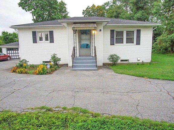 Welcome Home to your cozy 2 Bed 1 Bath Ranch style home. This 1,280sqft home features hardwood floors, large living room, and a country style kitchen. Full finished basement provides multiple uses, including large family room and 3 extra rooms. Exterior features large horseshoe driveway with detached 2 car garage. Large backyard beautifully situated on .6 acres. Home is currently used as Bread & Breakfast. Furnace & hot water heater replaced in 2015. Furniture included in this as is sale. COVID disclosure required before every showing.