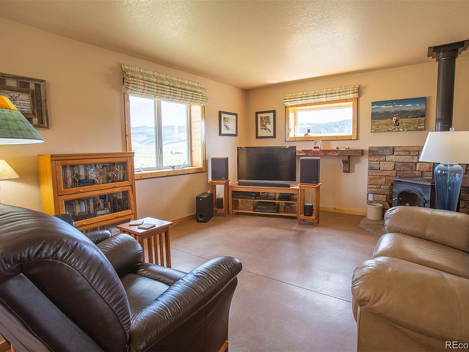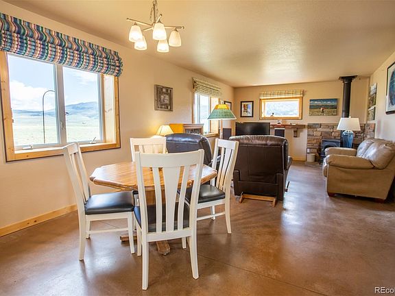 Super efficient, low maintenance home on 38 acres! 360* Mtn views! Single owner! Passive solar design/low heating costs! 2 garages for vehicles & toys! One level spacious floor plan has 2 living areas, an office/den, huge pantry, airlock entry, in-floor propane radiant heat, on-demand hot water, plus a crankin' Vermont Castings wood stove. Master bd w/large walk-in closet & double-ended clawfoot tub with a view! 6' tall windows on front of house! Prairie labyrinth. Near NFS/Tarryall Res!