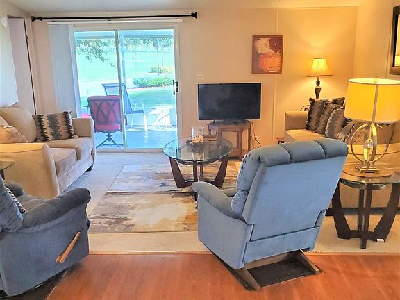 815 Sunningdale Court Winter Haven FL 33881 in premier community of Four Lakes Golf REDUCED! Lovely turnkey home with 2 bedrooms 2 bathrooms on golf course! This home comes with everything you could need to just bring your toothbrush! You will get all furnishings in photos and a golf cart. The air conditioner was replaced in 2016 and just recently serviced. This home will not last long because it is priced to sell! Lot rent is approx. $655 per month and includes access to all amenities except the golf club. Four Lakes Golf Senior Community You will feel so welcome. Don't worry about not knowing how to play a game, the residents will smile and say don't worry we will teach you. Lots of Laughter, Love and Luxury and the Dress Code is .. whatever, no one cares. But leave your snow boots and wool coats home, this is shorts and sneakers living! Mode of travel (but not required} is often a golf cart, bicycle or walking. Don't leave Rover, or Ruff home, pets are welcome. Breed friendly is required. Have a tall sweet dog or overweight cat, don't worry they are both welcome. Restaurant and Bar on site Olympic sized pool Tennis Courts 18 hole regulation Golf Course 20,000 Square Foot Clubhouse Boating on Lake Haines (get to 13+ other Lakes via canals) But what can I do All Day or Night? Well ... how about this! Pickle Ball Shuffle Board Fishing Pier Craft Room with Kiln Computer Room with Computers and printers Library Card and Game Room (Bridge, Hand and Foot, Bunco, Mahjong, Dominos, and more! Billiard Tables and Poker Room Movie Theater with theater seating Gym and Sauna Stage with many Live Shows Choral Group Veterans' Group Charities Group Weekly Coffee Monthly Hot Dog& Hamburger Night Monthly Birthday and Anniversary Dance Lots of live Entertainment Darts Karaoke Nights Live Music for Dancing Dances, Parties, Trips and much more Turn on a special TV channel and you will see what is coming up you will not want to miss. Activities Director and Fun! Fun!! Fun!!! Disclosure: Information is deemed to be correct but not guaranteed.