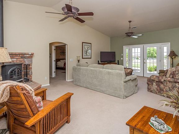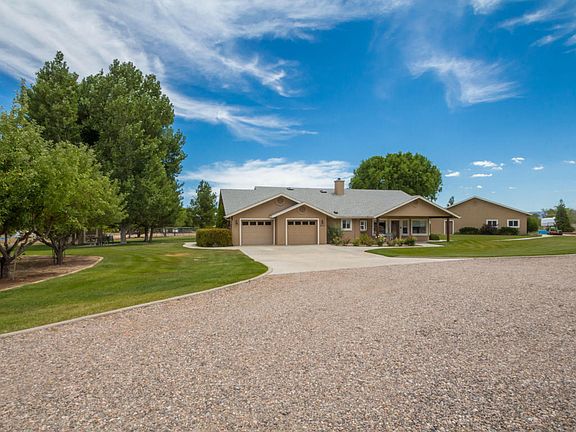 Beautiful country living in this custom ranch style home with oversized 2 car garage and detached 40 X 60, 2400 sq ft workshop. Open floor plan to the beautiful kitchen with custom style cabinets, large walk in pantry, industrial cook top, warming drawer and double convection ovens. Corian counter tops and center island with eat in dining area. Very large bedrooms with walk in closets. Office/3rd bedroom can easily be turned into bedroom (doorway framed for doors) and has walk-in closet. Workshop is complete with 3/4 bath, its own water heater, enough for 4+cars. 5.36 acres of level land, gated, fenced and cross fenced and top it off with gorgeous views. Beautifully irrigated landscape and fruit orchard. RV hookups with 30 amp box, water, cable and dump station.