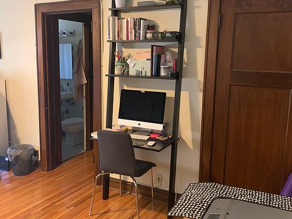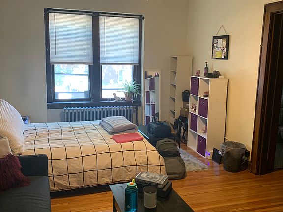 We have spacious studios available that are similar to a small one-bedroom apartment. They feature full kitchens, a small dining area/ office use, and a large living/bedroom area with enough space for a couch. These studios boast hardwood floors, beautiful built-ins, and amazing woodwork throughout. The timeless brickstone building is located in the desirable Marcy Homes neighborhood. Off-street parking is available for $50 a month, or you can opt for a garage spot for $100. Shared laundry facilities are conveniently located within the building.