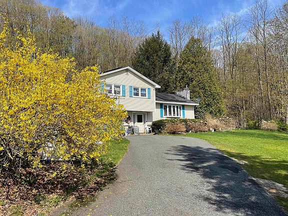 Occupied & maintained by the same family for decades this home is ready for some new owners! The cheery interior includes hardwood floors, protected by the carpeting for years, a fireplace and numerous upgrades including windows and vinyl siding. Multi levels include an entry area and office/den, accessed from the attached garage, or front door, lower level consists of a large basement area for utilities and laundry. The open concept kitchen, living and dining, and the 3 bedrooms and bath are on the upper level. 1.7 acres includes established perennials and trees and room for outdoor entertainment. Additional features include paved driveway, an outdoor pellet stove to supplement baseboard heat, dug and drilled wells, solar panels keep the electric bills low (leased), air conditioner/heat pumps, generator and a attached shed. This convenient location provides easy access to Putney, Brattleboro, Walpole and Keene, NH.