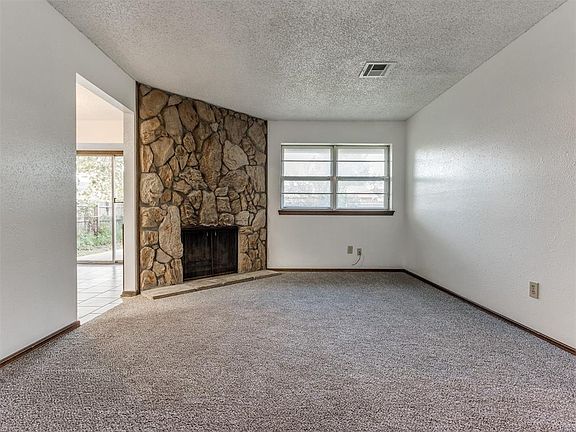 LOCATION, LOCATION, LOCATION! This charming home is situated in the heart of Edmond, with Campus just 4.5 miles away, along with an abundance of restaurants & shopping nearby. Upon entering the home you are warmly welcomed with a nicely rocked fireplace in your living area along with brand new carpet and paint throughout the entire house! In the Kitchen you will notice the brand new tile flooring and opportunity to make this space your own! The secondary bedrooms, nice in size, feature new carpet and paint. Across the hall in the secondary bathroom, you will have ample space with this nicely sized bathroom featuring new tile flooring and a newly tiled shower. Your Primary bedroom, with new carpet and paint offers an En-suite boasting new tile flooring and shower. Additional updates include: a new water heater put in this year (2023) , and HVAC condenser was put in 2022. You will not want to miss out on this move in ready home, it awaits its new owners!