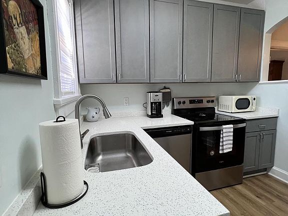 Live in Cameron Park! Fully furnished if needed. Available immediately. New kitchen with quartz countertops, cabinets, range and dishwasher. Cool small sun porch w/glass louvered windows! Two blocks to Glenwood South hotspots, The Village District, parks and YMCA. This charming 2 bedroom apartment has a private entrance, spacious living areas, 9 ceilings and hardwoods. Shared storage available in basement. This is a Triplex. If desired it may be leased furnished with furniture, beds, 55 smart TV and cookware.