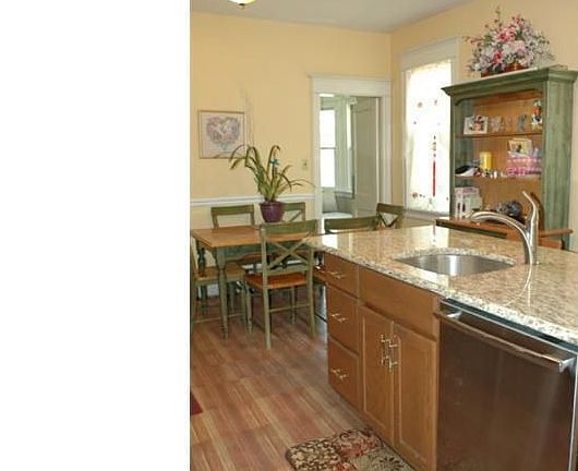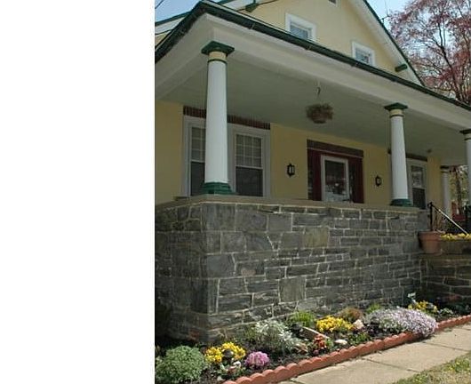 Oversized center hall, 3000+ sq ft living space. Featuring first floor spacious updated eat in kitchen, open to formal dining room with lovely bay window. Convenient first floor laundry room and 3 first floor bedrooms with full bath. Focal point of the formal living room is a large stone wood burning fireplace. Study/office also on the first floor. Second floor offers 2 dramatic bedrooms. Large walk in closet and contemporary bathroom with original claw foot tub, two full vanities, oversized ceramic stall shower with newly installed riverstone floor. Hardwood floors throughout. Full unfinished walkout basement for storage, play area, workshop. You will love the new granite countertops, updated bathrooms, large entertaining space; and on the outside, covered front porch, fenced side yard for play area and gardening, ample off street parking for 5 cars. This home is located convenient to shopping, transport, and recreation.