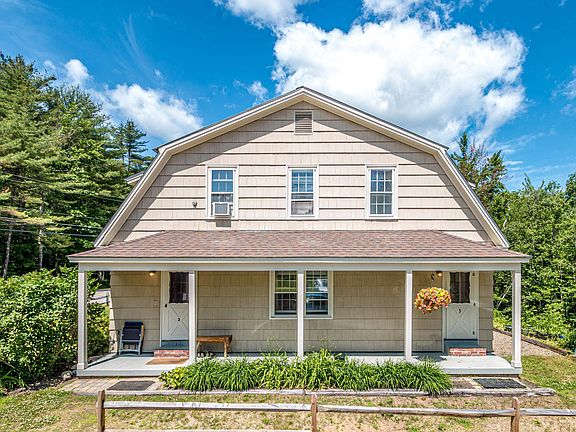 Great location for this 4 unit building with a strong rental history just 5 miles to North Conway Village. First floor Apt 2 is updated with vinyl plank floors, stainless appliances, custom cabinets and in unit washer/dryer. Apt 1, also on the 1st floor, is the largest, with an eat-in kitchen, living room, 2 bedrooms and a full bath. There is a lock out door to another bath, not currently plumbed, which leads to the attached garage which could be upgraded by a future owner. The garage is currently rented separately to a tenant who stores 2 small cars. Upstairs, via a separate entrance from the covered porch, are apartments 3 and 4, both 1 bedroom units, with a common hall. All apartments have separate entrances and exits, including a second exit via back stairs from the 2nd floor to a small covered deck. The parking lot is enormous; vehicles can park on either side of the building. A big plus is the basement, accessed currently via bulkhead, it also has inside stairs from the garage, incredible ceiling height and would make a terrific workshop. A raised entry would add storage income potential. Three of the tenants have been here 10+ years. They enjoy gardening, the great location and the larger floor plans that each unit enjoys. Seller financing possible to qualified buyer with 30% down, 5.5% interest, amortized over 25 years, with a 10 year balloon. Showings by appointment only.