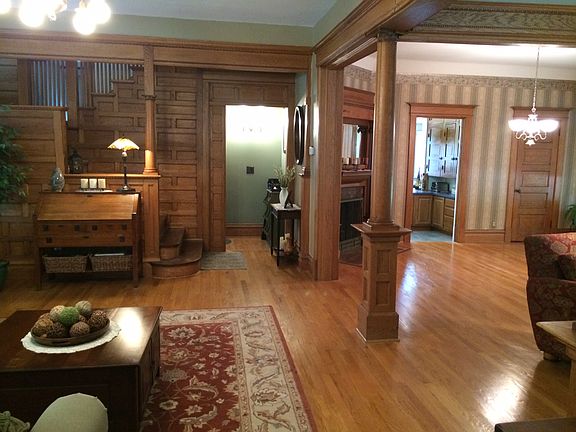 Enjoy the spring breeze on this large inviting front porch! Step back in time & enjoy all the beautiful natural wood work & wood flooring on main level. Great home for entertaining with the large Living Room opening to Family Room & Dining Room with a Fireplace with a gorgeous ornate wood surround. Gourmet Kitchen loaded with cabinets, granite counters, subway tile backsplash, (Double Oven, New Fridge & New DW) opening to a large Butler's Pantry with granite counter & bar sink opening to the Breakfast Room on one side and the Dining Room on the other, very convenient! Up the natural woodwork staircase you will find the Huge Master Suite complete with Fireplace, Sitting Room & Master Bath. The 2nd fl also includes a Library & 2 additional Bedrooms, Full Bath. Head onto the 3rd floor for 2 additional Bedrooms, Full Bath! Full Basement offers even more space! Large Laundry Room with sink, Mechanical Room and plenty of storage! You will enjoy the old charm & character with modern updates!