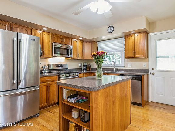 - Features: Kitchen (Island), Flooring (Hardwood), Window Treatments (Blinds)