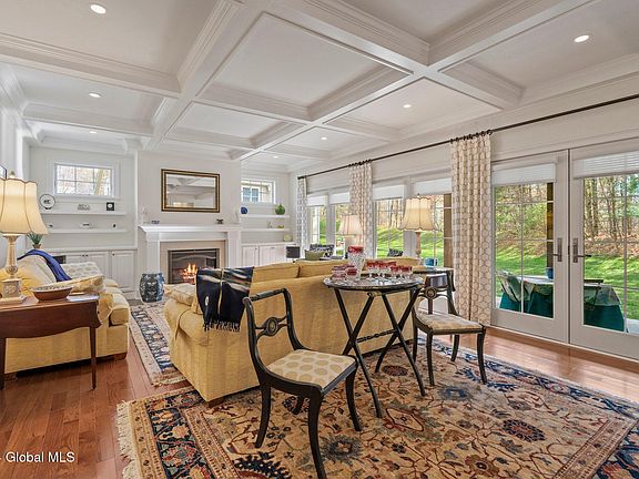 Stunning 4 yrs new custom home by Bella Home Builders. Ideal for entertaining. Open floor plan with sun streaming in all the rooms.Quality high end finishes and detail throughout. Living room has coffered ceilings, gas FP, and a wall of glass sliders to the porch. Dream kitchen with huge island, Quartz countertops, quant breakfast room, lg pantry. Formal dining with built in hutch. First floor den or office. Full tiled bath with shower. Upper level with private en suite, 2 WI closets, tile bath with cathedral ceiling, dbl vanity, soaking tub, WI rain shower. Additional bdrm with WI closet. 3rd bdrm with a view currently used as an office , built in cabinets and closet, vaulted ceilings. Main tiled bath w/ WI shower.Basement offers future potential living space. Why wait for New Cons