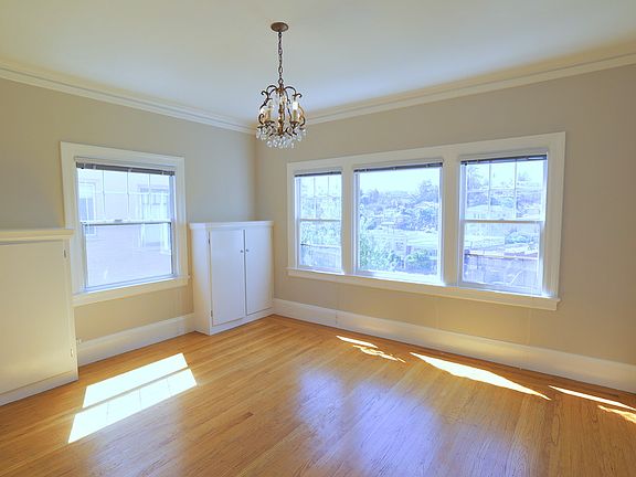 Sunny, spacious Upper Grand 1BD/1BA apartment located in a desirable neighborhood. * View; hardwood floors * Living room with a Murphy bed * Formal dining room (or office) * Renovated kitchen with stainless steel appliances * Laundry facilities * Garden with fruit trees * Non-smoking building * Cat OK * On-street parking Near Trader Joe's; Peet's Coffee; Noah's Bagel; Grand Lake Theater (Farmer's Market on Saturday); Safeway; Montclair Village (Farmer's Market on Sunday); public/carpool transportation Shown by appointment. First year's occupancy is available on a one year lease. When the lease period is approx. 45 days from the lease's expiration date, a letter offering another one year lease or the option of a month-to-month residency will be forwarded.