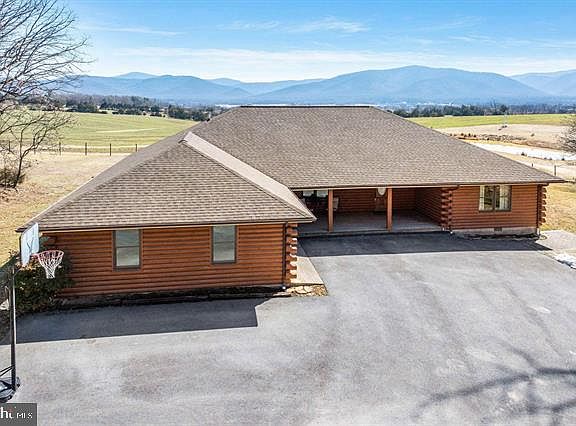 Magnificent log home situated on 2.6 acres with Million Dollar panoramic views of the Shenandoah Valley. If a superb view and settings what you desire, look no farther as settings and views like this don't come to market often. Featuring 3 main floor bedrooms and 2 spacious bathrooms, each room is adorned with large windows and glass doors to take in the panoramic valley views across the adjoining farmland and pond. If additional space to expand is desirable, the property features a 10x40 unfinished 2nd story for room to expand as well as a 600 sq ft basement room. The attached garage features a heated and cooled workshop area as well, great for a craft room or workshop. The wooded front yard provides for ample privacy and seclusion while the flat open side and rear yards provides great garden space and relaxation area by the existing fire pit. Located just minutes from Massanutten Resort, Merck, Coors and the Hospital this is a super location and must be seen to be appreciated.