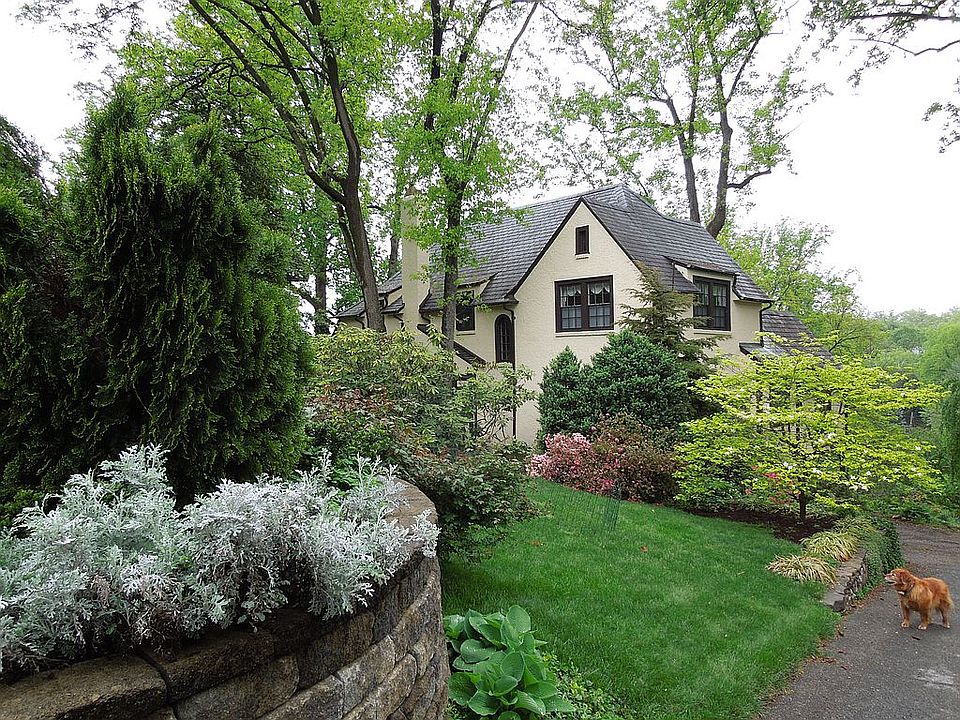 Tudor with slate roof, a/c, remodeled bathrooms and kitchen, granite counter tops. Spectacular property with rock walls, gardens, patio and fish pond. Totally private. Contact me for information or for a viewing.