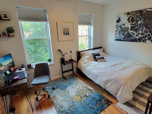 Located on the 3rd floor, is this stylish and updated 2 bedroom, 2 full bathroom apartment in the heart of Hoboken. The modern kitchen is equipped with stainless steel appliances, plenty of cabinets and breakfast bar. The open-concept layout is ideal for entertaining. Bedrooms are on opposite sides of the apartment with custom closets. Both bathrooms are equipped with rain shower heads. Cental AC and heat for added convenience. The rent includes the use of the flat screen smart TV with Sonos sound bar, full-size bed, dresser and bookshelf. Dedicated storage and common laundry in the basement and shared backyard. Within walking distance of the Hoboken PATH and Direct Bus to Manhattan. One pet considered on a case by case basis. Available 3/1/25.
