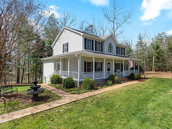 Beautiful one-owner 3 bedroom home in Earlysville, sited on a private 2.7 acres lot. Quality built in 1996 with 2x6 exterior walls, Marvin windows, and a real masonry chimney. First floor consists of formal living and dining spaces, a comfortable family room with FP and doors to deck, and a large eat-in kitchen with maple cabinets and stainless appliances. Upstairs are 3 nicely sized bedrooms and 2 full baths, including the primary. The entire 2nd floor has new laminate flooring throughout. Finished basement offers more room to spread out, a great woodstove with stone hearth, and plenty of storage. The house sits on a elevated knoll at the back of the 2.7acre lot, affording plenty of privacy and a level yard around the house. Wrap around porch, back deck, patio, and wonderful firepit area all offer plenty of opportunity to enjoy the privacy. Thoughtfully landscaped with beds, garden areas, and flowering trees. 2 storage sheds. Great northern Albemarle location, very scenic but not at all remote.