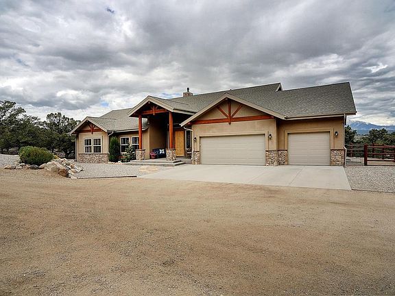Private and secluded beautiful and immaculate home on 3.78 acres just 3 miles from downtown Salida. Enjoy quick access to restaurants, services and fun while being able to retreat to your own natural sanctuary. Situated in the desirable Fawn Ridge subdivision, revel in unobstructed north and northwest views of Colorado's highest peaks. This unique, welcoming one level home reveals quality details in design and finishes that were thoughtfully selected, including energy efficient components, gourmet kitchen, wood beams on tongue and groove vaulted ceiling, a stone fireplace, woody alder cabinets, and an abundance of windows to maximize the high mountain sunshine. Home has low maintenance landscaping, a multi season covered back deck with stunning views complete this warm, comfortable and well situated home.