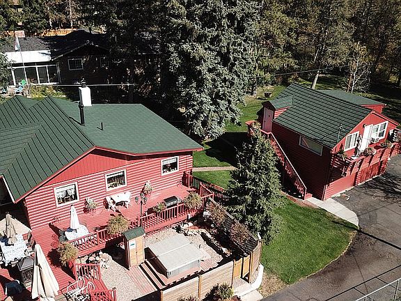 Mountain home (1450 sq ft) with finished basement (224 sq ft) plus detached double garage and guest house (current Airbnb) (576 sq ft) above garage for total of 2250 finished square feet. Lot size = .55 Acres.
