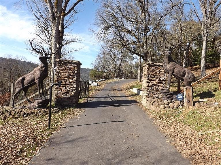 Incredible offering! Outstanding home with breath taking scenery. Rock and sculptured privately gated entry. Home features Granite counter tops, tiled, hardwood flooring. Newer carpeting and spiral staircase, (Possible 2-family setup.) Downstairs features Recreation room, wet bar, family room and master suite. Wrap around decks that offers outdoor living while enjoying spectacular views. Landscaping, three teir water fall feature. 22 x 16 storage shop, 12 x 33 studio/office with bath. Custom tree house with power. RV area with full hook-ups. Easy to show.
