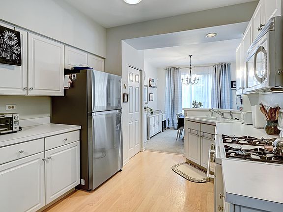 * highest and best offers by noon Sunday * Light, bright END UNIT in Darien's Reflections subdivision * 2 BRS plus loft and 2.1 baths * wood flooring in entry & kitchen * White Kitchen with NEW (2021) stainless refrigerator-ceiling fan & pantry closet. Garage door leads directly into the unit. Volume ceiling in Living room . LR/dining room combo has glass sliding doors to concrete patio with view of common area. Master suite with vaulted ceilings and private bath with walk-in shower and ceramic floor and walk-in closet. All 3 baths have newer taller toilets & newer faucets. Newer insulated garage door (2015). Second bedroom with double windows & it's own bathroom. All blinds stay. Spacious loft great for family room or office. Convenient 2nd floor laundry with cabinet-washer/dryer stay. Conveniently located to expressways. Exclude 4 shelves in LR. 2 white shelfs in garage can stay. Well maintained home but sold "as is".