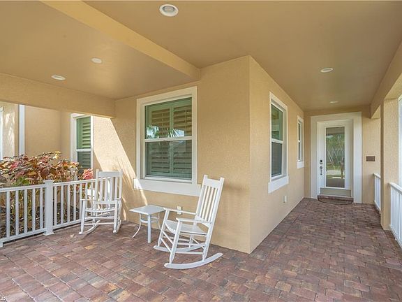VERY RARE OPPORTUNITY to own a CUSTOM DESIGNED three bed/two bath four-year-old Kendall model single family home in the gated community of VeronaWalk. A spacious paver porch leads to a sparkling, glass entry door. The entire home features neutral, plank floor tile. Your spacious eat-in kitchen offers soft close, white shaker cabinetry (additional pantry storage) with pull outs, granite counter with waterfall edge, herringbone tile backsplash and stainless Kitchen Aid appliances. Both baths have tiled shower enclosures with seamless shower doors and granite topped vanities. The primary ensuite bath includes a deep, freestanding, soaking tub. Upgrades include: hurricane impact windows, crown molding, plantation shutters, dual access to attic space, a custom built in desk/workspace and guest room built-in bookshelves with window seat. The laundry room has a stackable w/d, extra refrigerator, a built-in hamper and more cabinetry. Mechanicals are a redesigned, Trane A/C system. Outdoors is an extended, screen enclosed paver lanai with attached, epoxy floored, two car extended garage. The garage has a built-in work bench and additional storage.