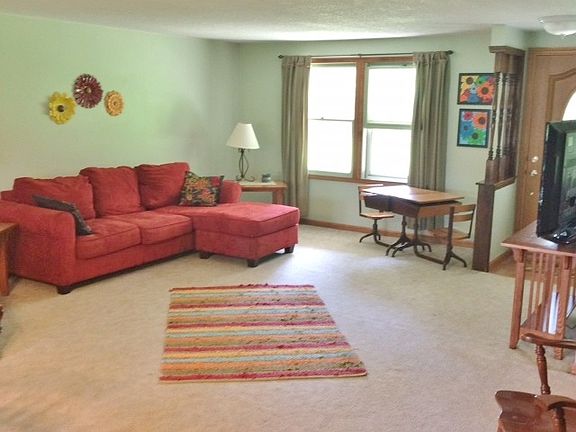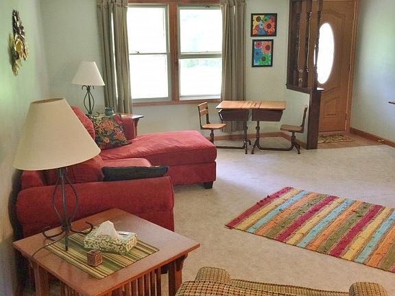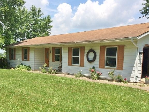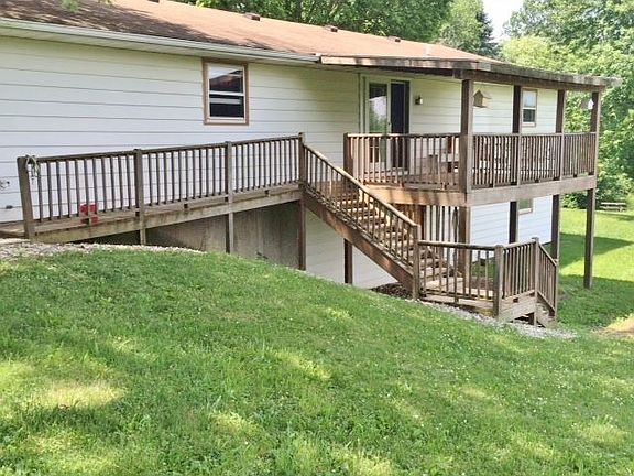 Your place in the country! Roomy ranch on a walk-out finished basement. Main level with 3 bedrooms, 1 1/2 baths, laundry area, kitchen with hardwood cabinets, large living room, open to a covered backyard deck to watch over your domain. The walk-out has a family room, 4th bedroom now used as the master suite, with full bath and walk-in closet. 10.4 acres, 30x40 pole barn, 10x15 lean-to and pond. HMS included.