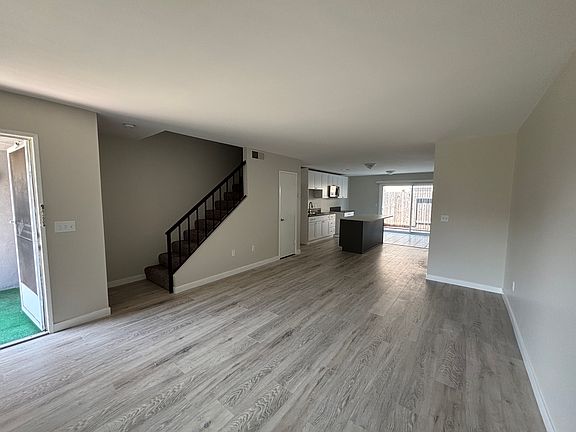 Fully Remodeled 2 Story unit with 2 Bedroom 1.5 Bath. Located near Beach Blvd. AND Ellis, Unit has new Laminate Flooring on the 1st floor, Carpet upstairs, New Vanities and accessories, Shaker Style cabinets in the Kitchen with 6' Island, Private Patio with access to the rear of the building and 1 Car Garage w/ Washer and Dryer Hook ups. This unit is a Beauty and wont last. Oner Pays for Water and Trash 1 Year Lease