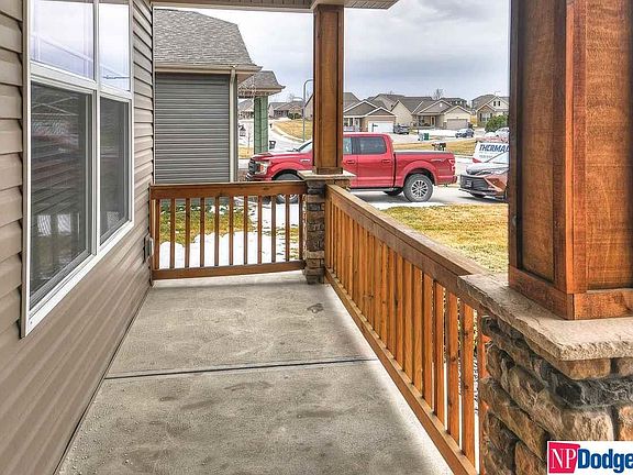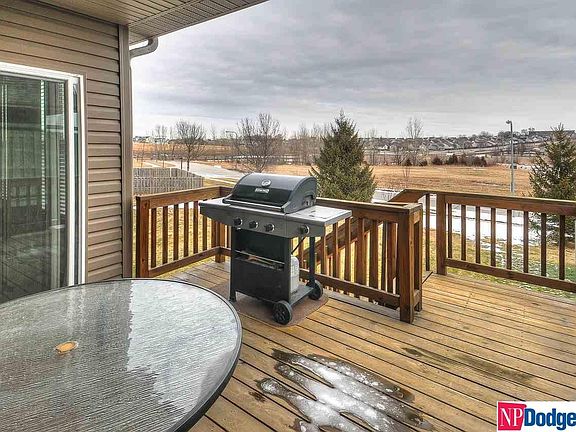 Terrific West facing Pine Creek Walk out Ranch! This home sits conveniently off 156th and Reynolds in Bennington Schools. Open floor plan, super clean, fresh interior paint and new shake siding over garage in 2020. Main floor features Primary bedroom with walk in closet and handicap accessible shower, 2nd bedroom, Living Room with warm gas fireplace, Kitchen with SS appliances, island has solid surface countertop, dining area opens to deck, spacious entry with drop zone, and main floor laundry. Lower level has large Family Room with patio access, 3rd bedroom, 3/4 bath, work out room. and storage . Watch the sunset on the front porch or enjoy entertaining with no backyard neighbors on the covered deck or patio!