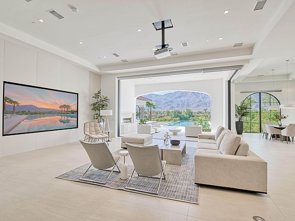 NEW CONSTRUCTION with FLAWLESS design + unparalleled VIEWS. Walls of glass disappear revealing the Santa Rosa and Coral Mountains. A backdrop rarely matched in our desert at this level. All the desert colors are at play here atop the 12th fairway of Andalusia Country Club. Back inside, the focal point chef's kitchen is elegant in its clean modern approach plus butler's pantry + wet bar. An exceptional Master Suite - the scale of this space speaks volumes, the finishes are 5 stars and the views are epic! Junior Ensuite Two features courtyard access, private bath and walk-in closet. Nearby paneled office with workstation, private bath and gorgeous built-ins doubles as Junior Ensuite Three. Junior Ensuite Four is a private casita with courtyard entrance, large living room with fireplace and kitchenette and a separate bedroom with private bath. State-of-the-art 16 channel surround-sound system designed from the ground up serves as the nerve center of this modern home. Home theater includes a 4K projector and 135-inch screen. Enterprise grade Cisco switches + multimode fiber optic and wireless access points installed throughout. Oversized garage with separate golf cart entrance. HOA includes Andalusia Country Club Sports Membership, tennis/pickle ball, bocce ball, fitness center, pool/spa, restaurant, hiking and biking trails. The time is now. Be a part of the magic.