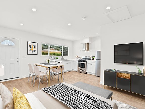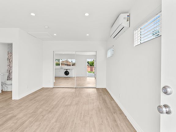 Welcome to your dream studio living in the heart of the city! This newly renovated, freestanding ADU studio conversion offers the perfect blend of modern comfort and convenience. Spanning 400 sqft, this private oasis boasts a spacious layout with no attached walls, ensuring maximum privacy for your peace of mind. Step inside to discover sleek quartz countertops to the stylish subway tiles adorning the large shower. Natural light floods the space through big windows, creating a bright and airy ambiance that invites relaxation. Stay comfortable year-round with the included mini-split AC unit, while the single washer and dryer unit streamline your laundry routine. Ample storage space is found throughout, including an impressive 11ft closet and cabinets for all your belongings. This turnkey unit comes fully equipped with a fridge, stove, and washer/dryer, making moving a breeze. Don't miss your chance to experience upscale urban living in this exquisite ADU studio. Schedule a showing today and make this your new home sweet home!