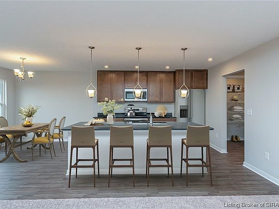 Stylish new Preston Modern Farmhouse plan by Fischer Homes in beautiful Silver Creek Meadows featuring an open concept design perfect for entertaining. Wide open with a large family room with a gorgeous wall mount electric fireplace. Large island kitchen with stainless steel appliances, upgraded maple cabinetry with 42 inch uppers with soft close hinges, gleaming granite countertops, walk-in pantry and walk-out breakfast room. Homeowners retreat with an included en suite with a double bowl vanity, soaking tub, separate shower and walk-in closet. There are 2 additional bedrooms, hall bathroom and laundry room. Full walk-out basement with full bath rough-in and a 2 car garage.