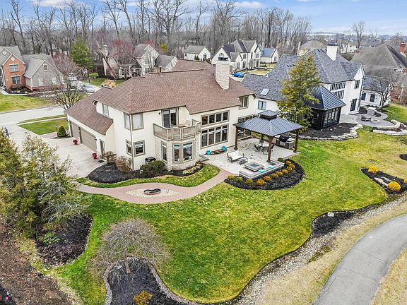 Searching for a home with welcoming indoor and outdoor hosting, hospitality spaces? Then this beautiful Romanelli & Hughes 2-story with a stunning paver patio/covered pavilion plus outdoor kitchen (2020), 2-story great room with dramatic wall of windows and finished basement plus wet bar is the home for you! Dreaming about a retreat where you can rest, relax, refresh after a hectic workweek? Then look no more! Located on the 7th hole of The Medallion Club's Rookery Course, enjoy natural beauty every day from the screened porch, dedicated primary suite balcony, or bayed breakfast nook. This stone-and-stucco home has over $160,000 in recent updates: roof, stone chimney, furnace, AC (2022), water heater, new drain tiles (2021), Invisible Fence (2020), new stone courtyard columns (2018)