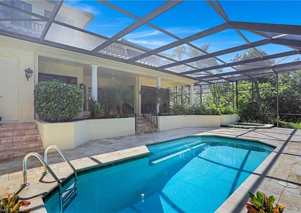 V.3046 - Live a luxury laid-back lifestyle with private beach access and attended cruise-like service on the sand or dine in a fabulous member-only Beach Club and Restaurant while you watch the sunset. The safe, picturesque dog-friendly neighborhood of Vizcaya is set within the exclusive Gated enclave of Bay Colony directly on the Gulf. This wonderful 4900 sq. foot, 2-story waterfront Majorca Villa (New Roof - 2018) offers a captivating southern view of Upper Clam Bay from the privacy of your own deck. Relax on your 38 foot covered Lanai surrounded by lush landscaping as you step down into a generously sized Pool and separate soothing Spa all screened for an enviable level of seclusion and security. The second floor balcony off the vast Owner's wing provides another level of the nature preserve's wondrous viewing. This is truly an amazing opportunity to own a spacious 5 Bedroom + Family Room + Study + Loft Office home. Bay Colony is located within SWFL's most desired beachfront community, Pelican Bay. The Waterside Shops & Artis-Naples border its south and the Ritz Carlton the north and it boasts two additional private beach restaurants, tennis centers and 2+ miles of coastline.