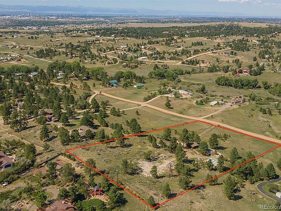 Calling all builders and investors! This 5 acre property with stunning mountain views is ready for some TLC to create the perfect country retreat. Nestled at the top of the driveway you'll find the main house and barn with 4 stables, mature trees provide ample privacy from the main road. The home features main floor living with 3 bedrooms, a full bath, and open concept living with cabin-like wood paneling. There is an abundance of wildlife with a mama deer and her baby, foxes, wild turkeys, hawks, etc. The Homestead Hills neighborhood is a special enclave that is less than 10 minutes to shopping and dining with easy access to commuting on E-470. The property has undergone a lengthy overhaul of removing machinery, cars, etc. but there is still some work to be done. The roof needs to be replaced which may prevent a conventional loan purchase. Ideally the buyer will be cash, hard money loan or a construction loan. The property is being sold strictly as-is. Note: there is .7 miles of dirt/gravel road to get to the property.