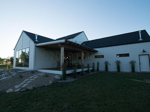 Must See! Beautiful modern Scandinavian farmhouse with privacy and space yet only minutes away from North Bismarck. Built in 2018 it combines efficient modern design with warm rustic finishes. This home welcomes you with an incredible open Ash slab staircase, a floor to ceiling steel cable on one side and reclaimed brick on the other. Beautiful rustic wood flooring in the foyer and kitchen is combined with radiant heat polished concrete flooring in the dining and living room area. This home also boasts efficiency and quality in its build with upgraded insulation, Insulated Concrete Form foundation, LED lighting throughout, HVR system and three zones of HVAC. There are too many amazing features to list here, please see attached documents for a full description.