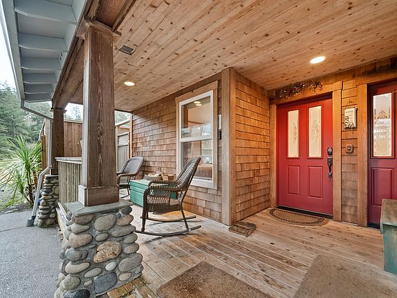 This charming Neahkahnie craftsman home is nestled on just under a half an acre & is a mere two short blocks to the beach. Filled with natural light and an ocean view from the second level, this beautiful open floorplan features Douglas fir flooring and a gorgeous river-rock fireplace by a renowned local mason. Don't miss the large, south facing back deck to enjoy the hot-tub and wildlife viewing to the sounds of the ocean. Immaculately kept and move-in ready. Home is a successful vacation rental and has a current and transferrable short term rental license with the county. It is being sold furnished and turn-key for a short term rental, primary residence, or second home!