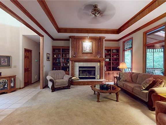 Wonderful custom home on acreage in De Soto! Tucked away at the bottom of a quiet cul-de-sac lot. Just a few minutes from all amenities. This is the perfect home that gives you the private country estate feel without the long drive to the nearest store/restaurants. Original owners gave attention to every detail of this home when they built it. The perfect floor plan with everything you need on one level. Large great room with fireplace. Kitchen with a fantastic island and plenty of cabinet space. Laundry room right off the kitchen. Den/sitting room off the kitchen that leads to the screened porch. Enjoy the tranquility as you are surrounded by trees and peace and quiet. Two bedrooms and 2 full baths on the main level. Upper level has a large private bedroom with ensuite bath. As a bonus this room has another full room attached that is the perfect office / play room or 5th bedroom. Lower level is an entertainers paradise. Full bar, recreation room, game area and another full bedroom and full bath. Two large storage areas and a Safe room/storm room under the front porch which could be converted to a wine cellar or a fun hideaway area. The walkout basement leads to the gorgeous private treed acreage lot. Newer AC , Water heater and roof. The detached garage is extra large with plenty of room to use as a work area or to store cars, boats, toys. This is an absolute gem of a home that has been loved by original owners for many years. Now being offered for sale to the lucky buyer who want to make this their next home.