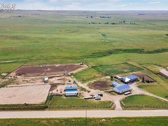 A quiet Colorado ranch just east of Colorado Springs, Colorado with views of Pikes Peak will make this property your dream come true. An Oversized 300' x 250' roping arena for practice to your hearts desire. The barn is equipped with electric, a 12x18 tack room, utility sink and 5 gallon on demand water heater. 2 - 12x18 foaling stalls with cameras and 3 - 12x12 stalls with Dutch doors and a hay loft that can accommodate 300 small bales. This property has 4 outside water hydrants, 5 separate fenced areas for horses or livestock and fenced back 30 acres with a pond. New stucco wraps this stick built, over 3,600 sq ft home with 5 bedrooms and 3 full bathrooms. A second kitchen in the walk out basement is ideal for in-laws, multi-family or entertainment. The 90x30 terraced garden is fenced on 3 sides with room to plant your heart's desire. A 1500 sq foot garage with electric doors with room for 4+ vehicles and a shop area for toys and tools. The "she-shed" is a roomy 18x24, with a chicken coop on the north side. This property has it all to include all new roofing on every building, gutters, water heater, septic system and interior paint. A dream acreage sure to impress!