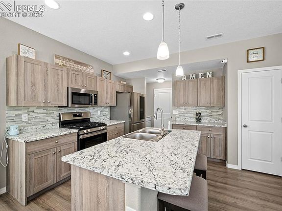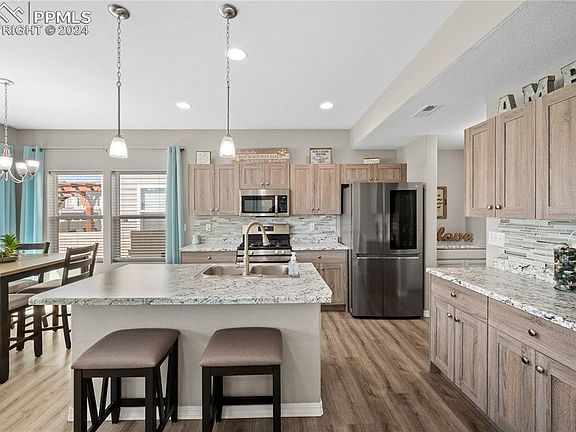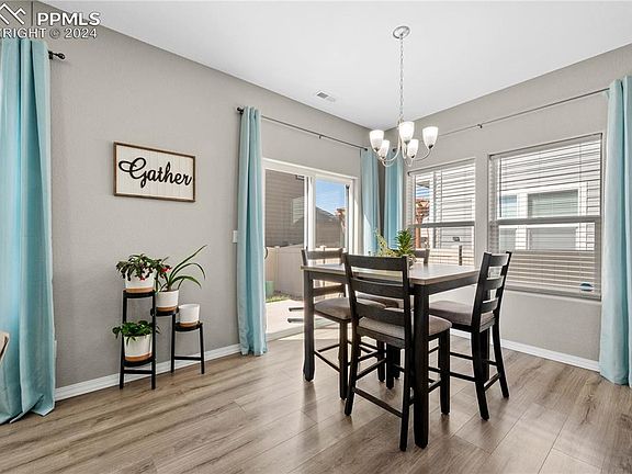 Welcome to a newly developed subdivision in the Powers Corridor, The Enclaves at Mountain Vista Ranch, in Colorado Springs. This like new home has a modern feel that will make you think your at the spa every day. The charming property offers all the beautiful finished that you desire and are looking for in a newer home. Inside, you'll find custom luxury vinyl wood flooring, an inviting open interior with lots of light. The kitchen and dining room are also open with a large island, tons of cabinets and a walk out to the back yard. The upper level gives you extra space with a nice loft that can be your next office, workout room, or play area. The master bedroom is full of light with a ton of space, a walk in closet and a 4 piece master bath. The other two rooms that complete the upper level are perfect size with the attached full bath. You are going to love the natural light this home brings in along with the custom color scheme and all the extras. The back yard is not large but definitely big enough to enjoy those starlit nights in this tranquil setting. Convenience is at your fingertips with nearby amenities, including shopping areas, restaurants, and entertainment venues just a short drive away. Easy access to Peterson AFB, Schriever and just 35 minutes to Fort Carson! This home is a gem in a beautiful community that is being built up, come claim your piece of this dream today.