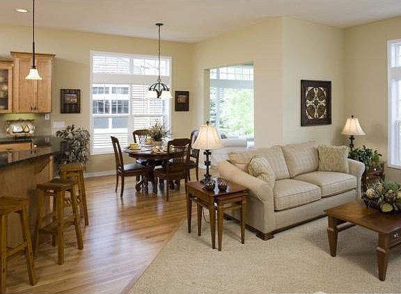 NEW rambler twinhome features 10' ceilings on main level, granite countertops, SS appl, birch cabinets, red birch floors, 4-season porch w/ in-floor heat & deck. This home backs up to a wooded conservation area. VERY PRIVATE!