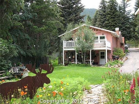 GET READY TO ENTER HANSEL GRETELS GINGERBREAD HOUSE IN BAVARIA GERMANY WITH SWEEPING MTN VIEWS AN ADJACENT STREAM THIS PROPERTY OFFERS PEACE AND TRANQUILITY IN A RUSTIC MTN SETTINGHUGE BLUE SPRUCE TREES SPRAWLING LAWNS LOVINGLY CARED FOR GARDENS SHOW OFF THIS TRADITIONAL LOG HOMEGLASSENCLOSED FRONT PORCH OFFERS ADDITIONAL LIVING SPACE VIEWS TO THE GARDENSENTER THE LARGE LIVING ROOM W ROCK FIREPLACE HARDWOOD FLOORINGFORMAL KNOTTYPINE DINING RM HAS MORE GARDEN VIEWSLARGE KITCHEN WLOTS OF NEWCABINETS NEW COUNTERS NEW SMOOTHTOP STOVEOVEN NEW DISHWASHER NEW CERAMIC FLOOR EATING AREA PANTRY LOTS OF COUNTER SPACE DESK AREA WALKOUT TO DECK WMTN VIEWS LARGE MASTER SUITE WPLENTIFUL CLOSET SPACEUPDATED FULL BATH SECOND BEDROOM ON MAINNEW CHAMPIONWINDOWSWALKOUT BASEMENT HAS LARGE REC RM OFFICECRAFT ROOM WLOTS OF NATURAL LIGHTSEPARATE FAMILY ROOM BEDROOM COMPLETELY REMODELED BATHROOM AND WET BARCOVERED PATIO PERFECT FOR WATCHING SUMMER RAINS GAZING AT MTN VIEWSHUGE 30X22 TWOFOUR CAR GARAGE HEATED WORKSHOP WOVERHEAD STORAGE 220V POWER SIDE DOOR WINDOW OFFERS GREAT ADDITIONAL SPACEWITH ONLY 10 MINUTESFROM COLORADO SPRINGS THIS BEAUTIFUL LOT CHARMING HOME LOVELY SETTING MAKE THIS MTN RETREAT A REAL GEM