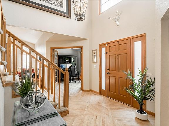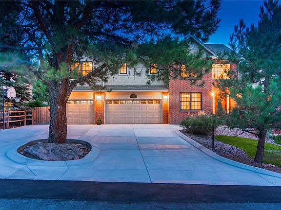 This lovely home in the sought-after Pinery neighborhood has fantastic curb appeal and a bright & open floor plan! Newly refinished floors, new paint, custom stone fireplace, and top-of-the-line kitchen appliances make this home move-in ready! The oversized 3-car garage and upgraded concrete driveway allows for additional parking spaces with extended space for larger vehicles. A large, private backyard with a 35'X5' flower/vegetable garden and raised trex deck are perfect for entertaining or enjoying the beautiful Colorado evenings. See views of Pikes Peak from your large Master Bedroom and enjoy your updated 5 piece Master Bathroom and oversized custom closet! Each guest bedroom has a walk-in closet and share a large, full bathroom upstairs. Catch glimpses of wildlife walking to the lake just down the street to fish or enjoy the park. Unique to this neighborhood, this home also has a finished, walk-out basement with 3/4 bath & plenty of unfinished space for storage.