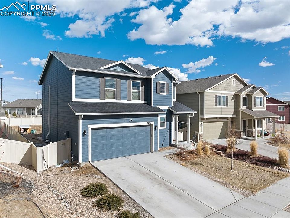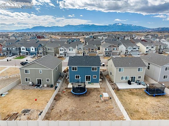 Stunning 2-Story Single-Family Home with Spectacular Pikes Peak Views!! Welcome to this charming 3-bedroom, 4-bathroom home built in 2020, located in the desirable neighborhood east of Markshuffle. This beautiful two-story residence offers the perfect blend of modern living and picturesque views, with breathtaking vistas of Pikes Peak from multiple rooms. The open-concept design boasts new hardwood floors throughout, fresh paint, and a recently installed roof, ensuring that this home is as stylish as it is functional. The spacious kitchen is perfect for cooking and entertaining, while the inviting living areas provide plenty of room for gatherings and relaxation. Upstairs, you'll find well-sized bedrooms, including a luxurious master with its own private bath. The additional bathrooms throughout the home provide added convenience and comfort. Enjoy easy access to Peterson Air Force Base, Schriever Air Force Base, and the Powers Corridor, making this location ideal for military personnel and those working in the area. Whether you're relaxing in your backyard, soaking in the Pikes Peak views, or heading out to nearby parks, shopping, and dining, this home offers the best of Colorado living. Don't miss the opportunity to make this gem your own—schedule your showing today!
