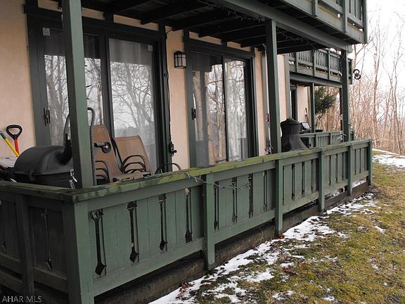 Great investment! Turnkey 1st floor Condo unit that remind you of a Swiss chalet! Enjoy skiing in the beautiful Blue Knob wooded community with low HOA that offers use of Tennis Courts, Swimming Pool, Clubhouse. Hiking, golf and biking are some of the other outdoor activities here. Easy access to ski trails; Condo is a Ski-out to a groomed cross-country trail Efficient design with pleasing to the eye appointments. Sleeps 5 as there is a Pull-out sofa in the Living Room. Plenty of parking in the HOA maintained parking area. Call today for a private Showing.