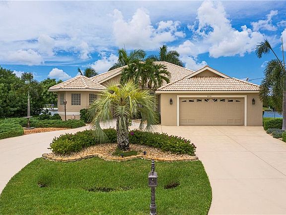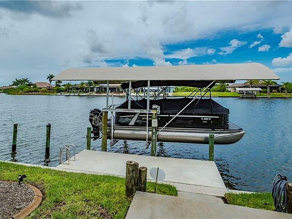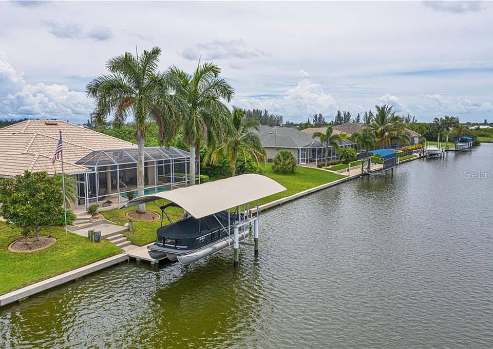 Come see this fabulous South Gulf Cove three bedroom two bath pool home located on one of the best water views in the area. Capture magnificent sunsets looking across the Tracy waterway. Once you arrive at this beautiful home. The circle driveway leads across paver stone walkway to double door entry. Once inside, you will look across the formal living room onto the pool and tremendous water view of Lake Tracy. Continuing on to the state-of-the-art custom kitchen with level 4 upgraded granite which opens up to a huge family room. Zero slider doors afford you unobstructed views of the water swimming pool with spa concrete dock and boat lift. This three bedroom two bath home features 18" tile floors laid on the diagonal. Home also features 10 foot ceilings throughout, crown molding and so much more. This home also features large master suite and master bath with soaker tub and walkaround shower. Master bath has luxurious faux paint and master features faux accents. Updates in the last couple years include kitchen, exterior and interior paint, in wall extermination system, Cellular alarm system, custom window coverings. exterior interior whole house surge protectors, new garage door opener in 2020, 6000 pound boat lift with canopy, high-efficiency digital pool pump, pool heater still under warranty, professionally wired for full house generator, portable generator included, tile professionally cleaned and sealed with tenure roof tile sealer in 2020. And so much more. If you're looking for house to move right in today. Look no further. No need to wait a year to build a new home when you can buy this home with all the updates and improvements. Just when you thought it couldn't get any better. The quick access to the Myakka River and Charlotte Harbor, you can be an open water in 15 to 20 minutes. You just won't find a better deal. Home is easy to show on short notice. Make your appointment today and you'll be glad you did.