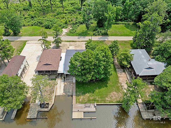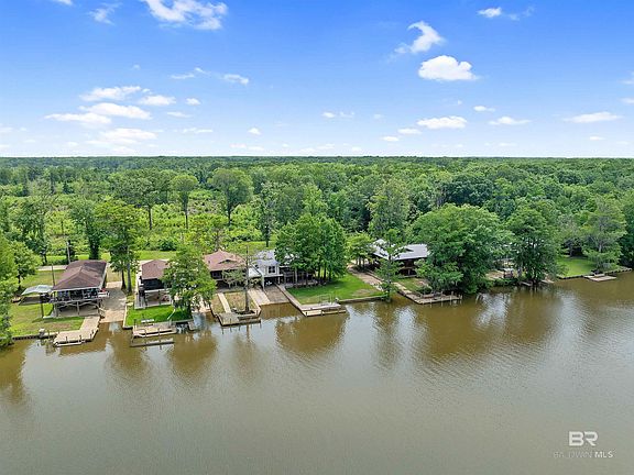 **Charming Retreat at Upper Bryants Landing**Nestled among majestic cypress trees along the scenic Tensaw River, this beautifully renovated property offers a perfect blend of comfort and functionality. The home features a new dock, ideal for your boating and fishing adventures, and a spacious covered porch perfect for relaxing while enjoying the stunning views.Inside, you'll find an inviting layout with panoramic view windows that let in abundant natural light. The property is equipped with two AC units to ensure your comfort year-round. Recent renovations include updated flooring, cabinets, and countertops, adding a modern touch to the home.With a reinforced sea wall for added protection, this property is not only a serene getaway but also short or long-term rental friendly, making it a fantastic investment opportunity.Experience the tranquility of riverfront living at Upper Bryants Landing! Buyer to verify all information during due diligence.