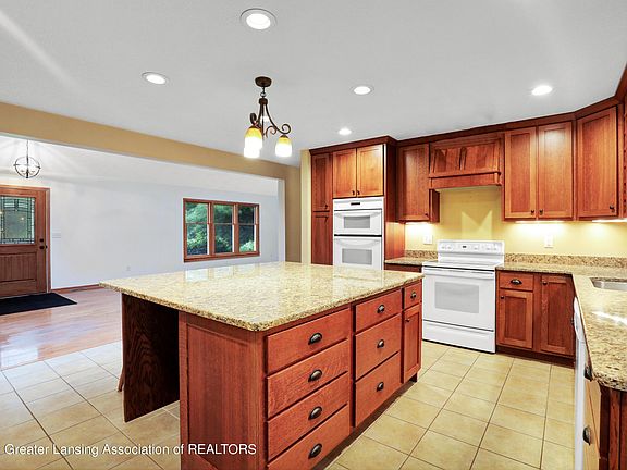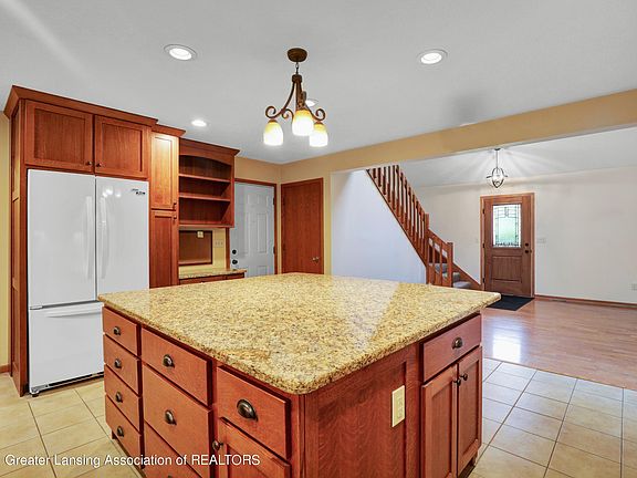 Offers due by 8 pm 6/28/21 Welcome to 8157 Hunter in Bath. This 4 bedroom,2 bath home on over 2 acres has everything you need. There is a beautiful chefs kitchen with granite counter tops, large island and walk in pantry. Vaulted ceilings make for open living and dining room area included wood burning insert that could heat the house. Bedroom, full bath and Lovely NEW screened porch and deck off the kitchen round out the main floor. Second floor has primary and second bedroom plus another full bath. Lower level is a walk out with large family room including pellet stove and TV plus built in bookcases. In the laundry are built in counters for hobby area, a freezer and washer/dryer. There is a 4th bedroom too! The barn is very spacious with high overhead doors and a loft area for storage.